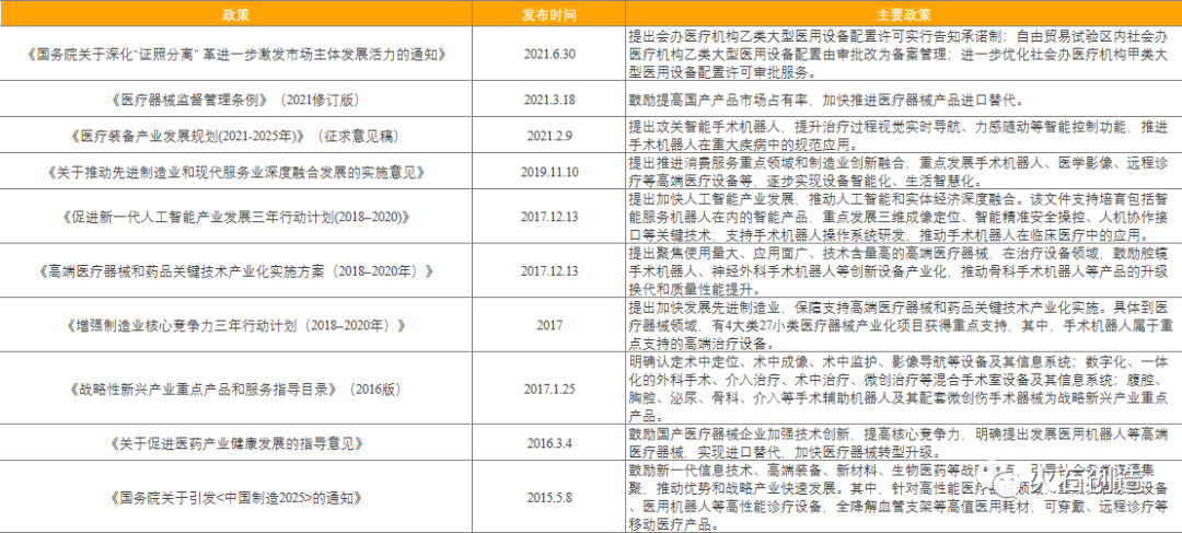 表2:截至2021年底中國腔鏡手術(shù)機(jī)器人相關(guān)政策