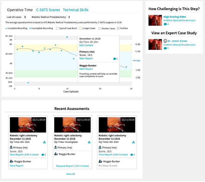 醫(yī)生可將他們的手術(shù)案例安全地存儲(chǔ)在私人C-SATS視頻庫(kù)中,并獲得人工智能和數(shù)據(jù)分析得到的臨床見解,還可以獲得專家的評(píng)估和反饋,不斷完善他們的技能。