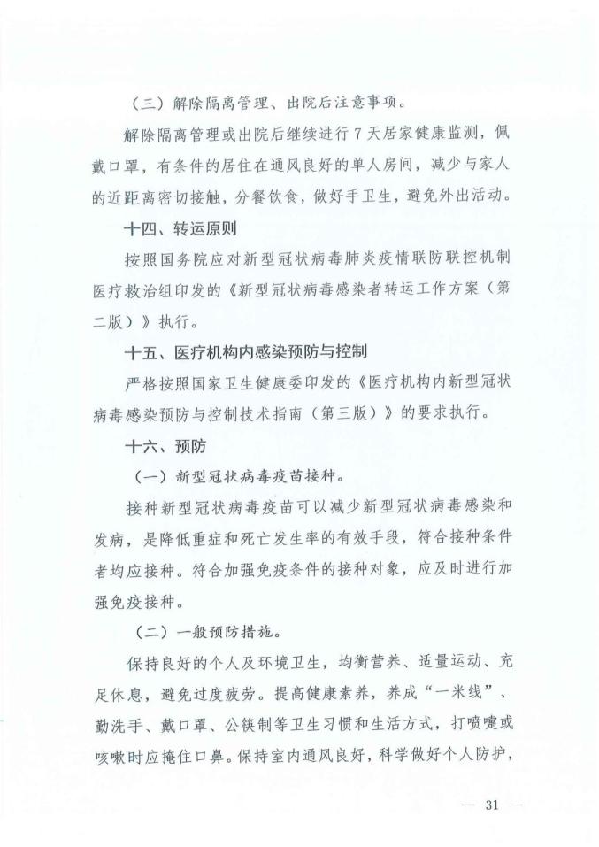 11、預(yù)防部分提及:接種新型冠狀病毒疫苗可以減少新型冠狀病毒感染和發(fā)病,是降低重癥和死亡發(fā)生率的有效手段,符合接種條件者均應(yīng)接種。符合加強(qiáng)免疫條件的接種對(duì)象,應(yīng)及時(shí)進(jìn)行加強(qiáng)免疫接種。