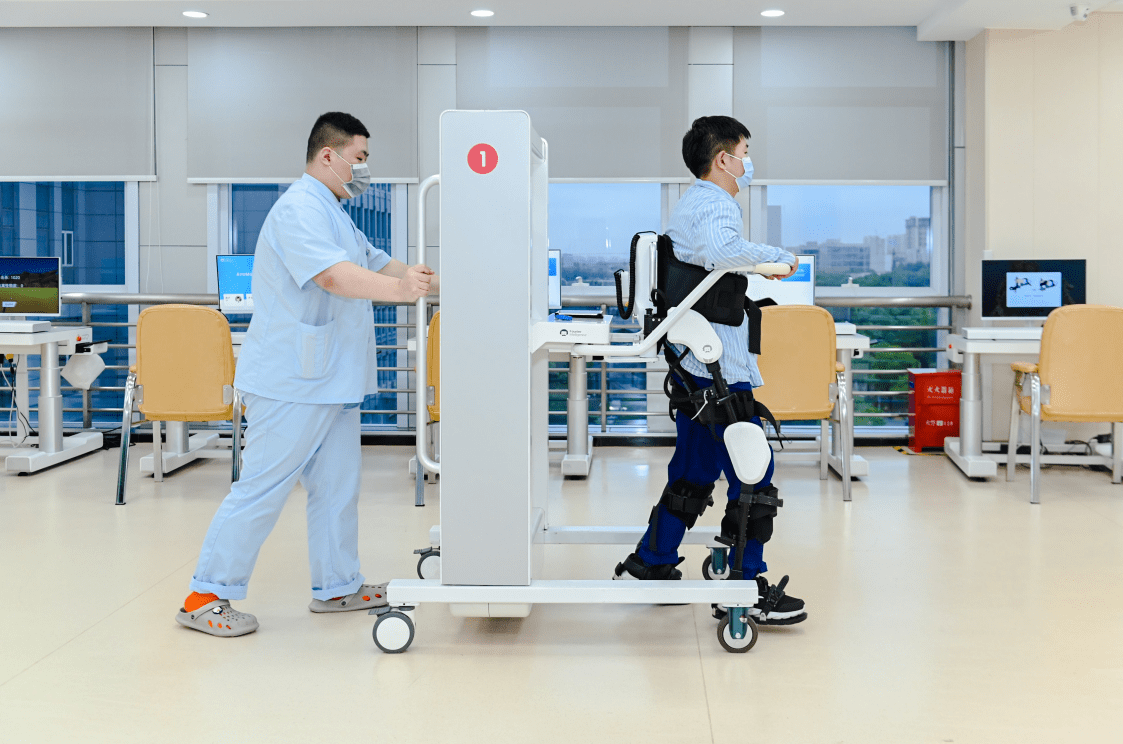 值得一提的是,這間擁有50余臺智能康復(fù)設(shè)備,可同時容納50人康復(fù)訓(xùn)練的康復(fù)機(jī)器人物聯(lián)港內(nèi),僅需配備3名專業(yè)治療師,就可以滿足所有患者的醫(yī)療需求,使得康復(fù)由人力密集型向技術(shù)密集型轉(zhuǎn)變,突破了傳統(tǒng)康復(fù)服務(wù)專業(yè)人才不足的困境。