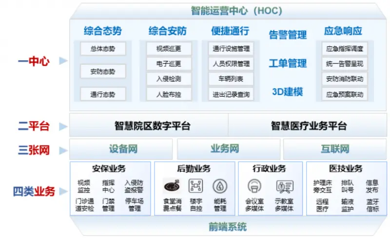 四類業(yè)務(wù)智能就醫(yī):安保后勤一體化管理,360度守護(hù)醫(yī)生、護(hù)士、患者、家屬的人身安全,能耗全局監(jiān)測,節(jié)能減排。醫(yī)護(hù)患信息實時交互、精準(zhǔn)對癥靈活導(dǎo)醫(yī)就診、遠(yuǎn)程探視、遠(yuǎn)程會診,打破時空限制,醫(yī)療服務(wù)智能便捷,患者體驗煥然“醫(yī)”新。