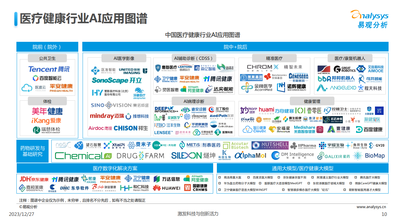 ? 從整體規(guī)劃來看,醫(yī)療AI行業(yè)還將繼續(xù) 享受政策紅利。政策將推動(dòng)成果轉(zhuǎn)化, 加速醫(yī)療AI應(yīng)用落地,持續(xù)完善標(biāo)準(zhǔn)規(guī)范體系。但同時(shí),隨著標(biāo)準(zhǔn)體系的建立, 企業(yè)也將面臨更高的技術(shù)與合規(guī)門檻。 只有把握核心技術(shù),持續(xù)投入研發(fā)與創(chuàng)新,才能把握發(fā)展機(jī)遇,建立牢固的競 爭壁壘。