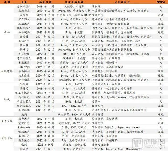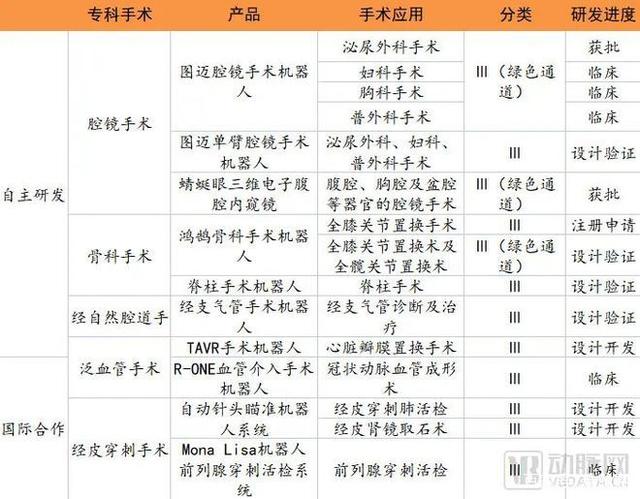 國(guó)內(nèi)主要企業(yè)手術(shù)機(jī)器人布局,數(shù)據(jù)源于動(dòng)脈橙