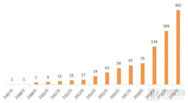 從2006年12月國(guó)內(nèi)引進(jìn)第一臺(tái)達(dá)芬奇手術(shù)機(jī)器人開(kāi)始,截至2021年底全國(guó)累計(jì)裝機(jī)262臺(tái)。2013年以前年裝機(jī)量基本低于5臺(tái),2014年~2018年新增在10臺(tái)左右。最近3年呈現(xiàn)爆發(fā)式增長(zhǎng),分別為 59、54和73臺(tái)。
