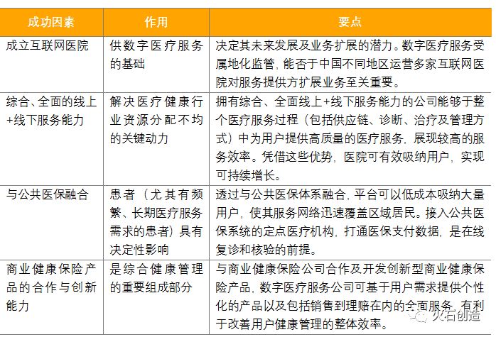 表2:中國數(shù)字醫(yī)療服務(wù)市場成功因素