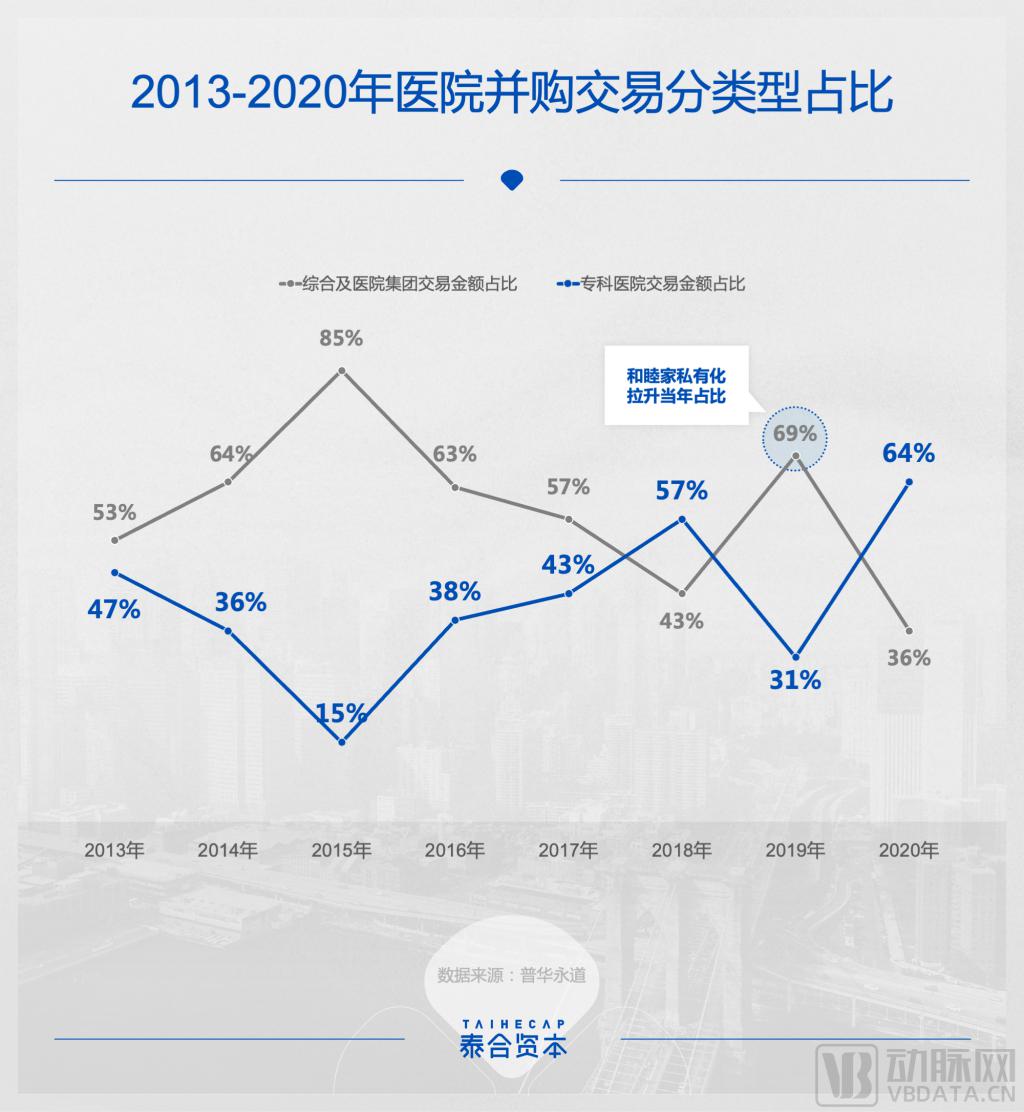 從2018年開始,具備專科特色優(yōu)勢及優(yōu)質(zhì)醫(yī)師資源的??漆t(yī)院逐步受到投資方的青睞,并購資金開始由綜合醫(yī)院集團(tuán)向?qū)?七B鎖醫(yī)院傾斜,民營醫(yī)院的并購整合開始成為主流。根據(jù)普華永道統(tǒng)計數(shù)據(jù)顯示,2020年國內(nèi)??漆t(yī)院并購交易金額占醫(yī)院總并購資金的六成以上。
