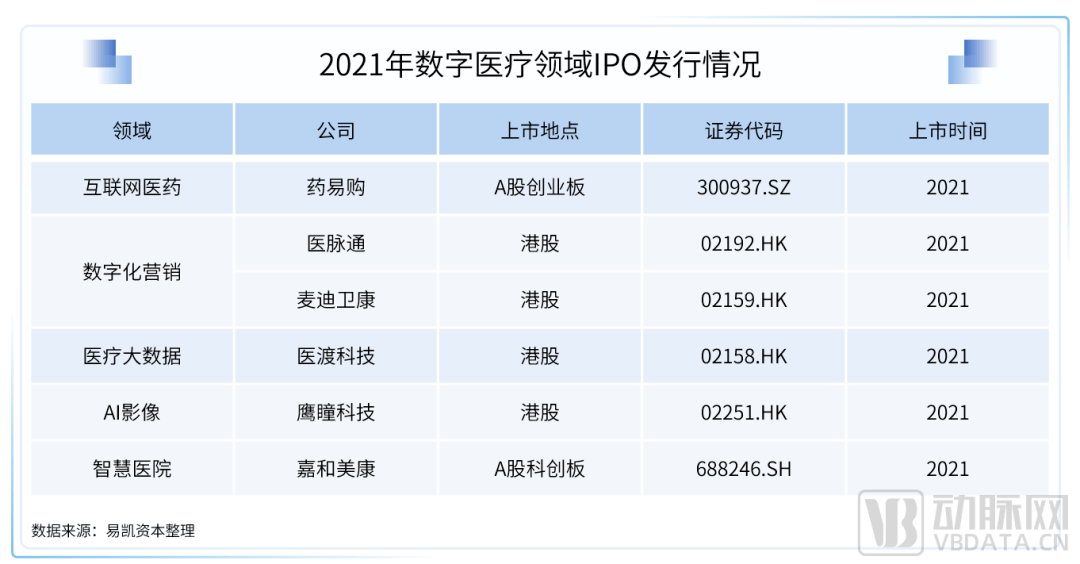 (2)2021年數(shù)字醫(yī)療領(lǐng)域IPO發(fā)行實(shí)現(xiàn)飛躍