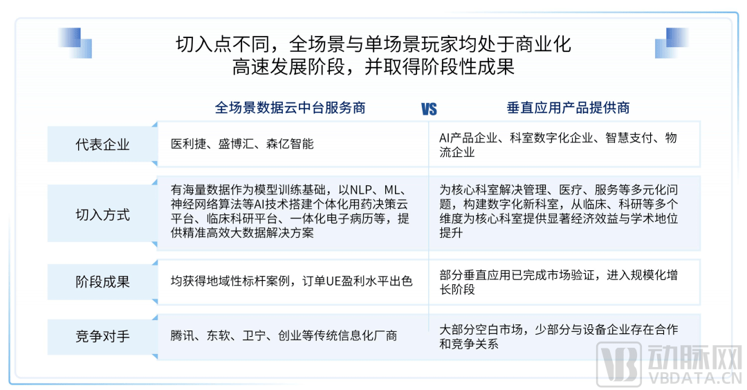 從2019年前后起,市場(chǎng)從對(duì)第一波數(shù)字醫(yī)療的認(rèn)知中不斷升級(jí),以及后續(xù)疫情的催化,第二波數(shù)字醫(yī)療公司迎來(lái)了資本的推崇,逐漸向“醫(yī)療數(shù)字化”方向演變,這里面以AI影像、科室/臨床數(shù)字化為典型代表,這些公司不再以互聯(lián)網(wǎng)+的方式高舉高打,反而更多聚焦于醫(yī)療的本質(zhì), 通過(guò)數(shù)字化的方式來(lái)提升院內(nèi)診斷及治療環(huán)節(jié)的效率,支付方也轉(zhuǎn)向了藥企或者醫(yī)院,同時(shí)變現(xiàn)方式也可通過(guò)服務(wù),或通過(guò)軟件,或通過(guò)具體產(chǎn)品等。這部分公司有些已經(jīng)發(fā)展到中期階段,已開(kāi)始在商業(yè)化收入規(guī)模上顯示了一定的潛力和趨勢(shì),成為目前數(shù)字醫(yī)療領(lǐng)域的中堅(jiān)力量。