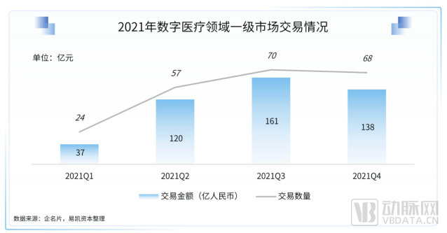 (1)2021年數(shù)字醫(yī)療領(lǐng)域一級(jí)市場(chǎng)交易活躍度大幅提升