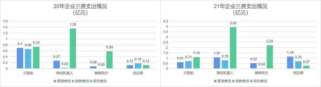 手術(shù)機(jī)器人企業(yè)20及21年三費(fèi)支出情況