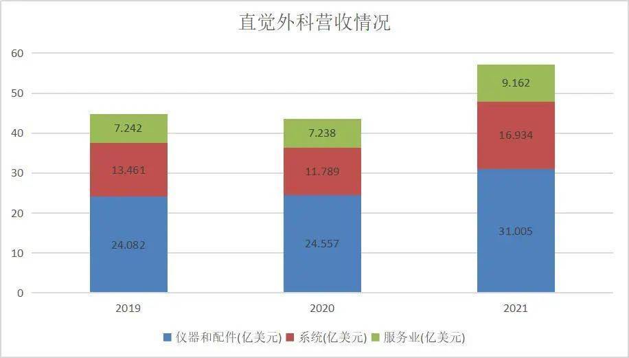 根據(jù)直覺外科年報(bào)披露,受到2020年全球新冠疫情的影響,達(dá)芬奇機(jī)器人參與的手術(shù)數(shù)量出現(xiàn)回落,隨著疫情的好轉(zhuǎn)2021年手術(shù)數(shù)量出現(xiàn)回升,公司的營收情況也出現(xiàn)好轉(zhuǎn),2021年?duì)I收達(dá)到57億美金,相比2020年的44億美金增加31%。