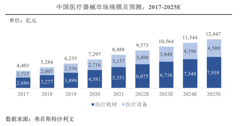 ??與全球醫(yī)療器械市場相比,中國醫(yī)療器械市場增長相對更加迅速。在居民生活水平的提高、國家對醫(yī)療健康領(lǐng)域政策扶持等因素的驅(qū)動(dòng)下,中國醫(yī)療器械產(chǎn)業(yè)進(jìn)入快速發(fā)展階段。自2017年至2021年,中國醫(yī)療器械市場規(guī)模從4,403億元增長至8,488億元,年復(fù)合增長率達(dá)17.8%,其增速遠(yuǎn)超全球醫(yī)療器械市場整體增速。未來隨著市場需求的進(jìn)一步擴(kuò)大、國家分級(jí)診療等政策的推進(jìn)以及行業(yè)技術(shù)發(fā)展帶來的產(chǎn)業(yè)升級(jí),中國醫(yī)療器械行業(yè)將有望繼續(xù)保持高速增長的態(tài)勢,深化高端產(chǎn)品的國產(chǎn)化發(fā)展過程,預(yù)計(jì)2025年中國醫(yī)療器械市場規(guī)模將達(dá)到12,447億元。
