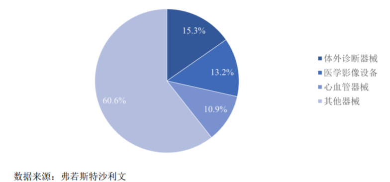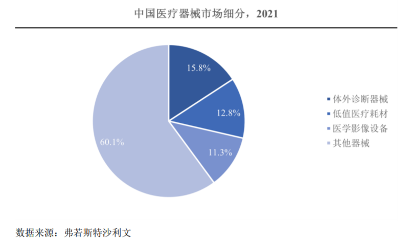 ??中國醫(yī)療器械細(xì)分領(lǐng)域中,體外診斷器械、低值醫(yī)療耗材和醫(yī)學(xué)影像設(shè)備排名靠前,2021年占比分別為15.8%、12.8%和11.3%,其中,我國醫(yī)學(xué)影像設(shè)備市場規(guī)模達(dá)到954億元。