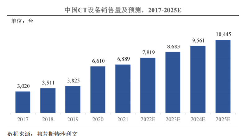 ??2021年中國CT市場總銷售量達(dá)到6,889臺(tái),預(yù)計(jì)到2025年,中國CT設(shè)備整體銷量將達(dá)到10,445臺(tái),年復(fù)合增長率達(dá)到11.0%。