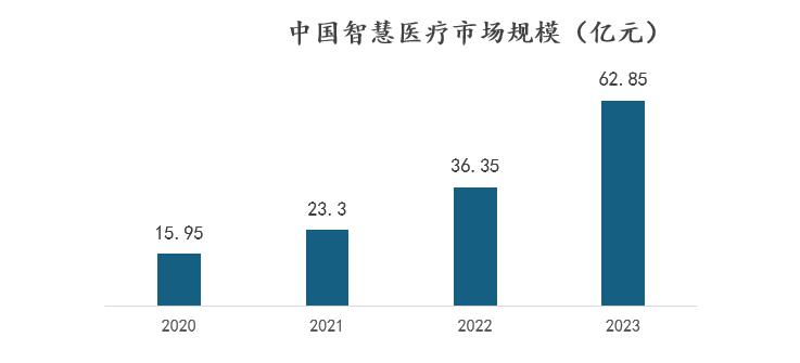 智慧醫(yī)療新的風口正在開啟,隨著智慧醫(yī)療技術(shù)的不斷發(fā)展以及政策層面的支持和推動,我國智慧醫(yī)療市場規(guī)模正在不斷擴大,并呈現(xiàn)出高速增長的態(tài)勢。2023年,我國智慧醫(yī)療市場規(guī)模達62.85億元,2019-2023年的年均復(fù)合增長率達53.37%。