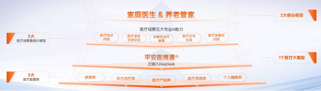以DeepSeek為代表的通用大模型盡管擁有強(qiáng)大的推理和分析能力,但無法直接應(yīng)用于全流程醫(yī)療業(yè)務(wù)場(chǎng)景。為此,平安好醫(yī)生推出了分層的醫(yī)療大模型。