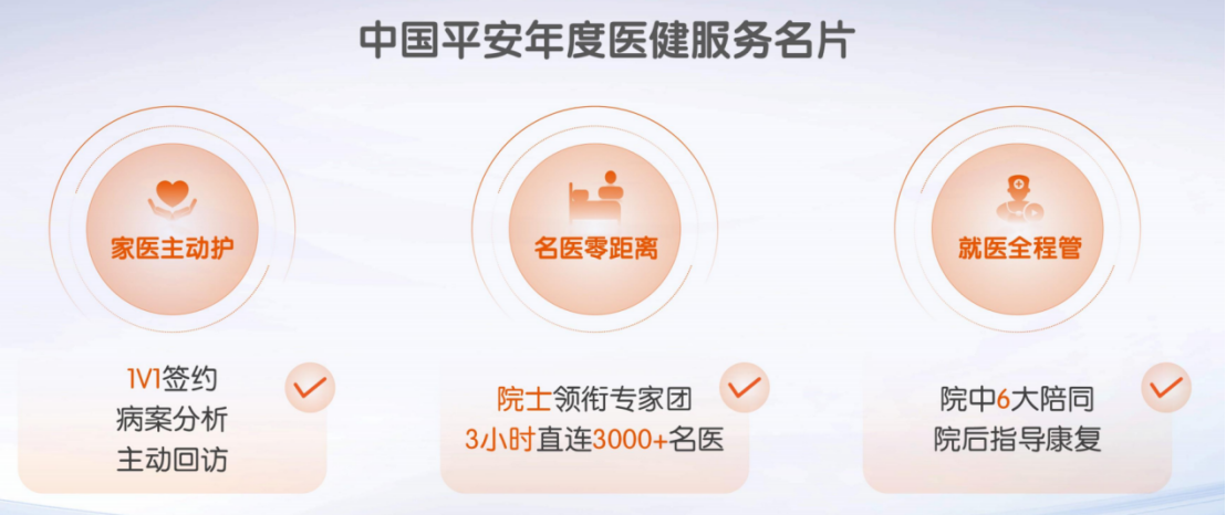 (來源:公開資料)其中,自有家庭醫(yī)生團(tuán)隊(duì)能夠7*24小時(shí)提供全天候病案分析和主動(dòng)服務(wù);外部名醫(yī)專家則是解決復(fù)雜病癥的主要力量,疊加“平安芯醫(yī)”AI數(shù)字人助力,廣大重癥用戶可以更便捷獲得稀缺的醫(yī)療資源;“就醫(yī)全程管”更是通過補(bǔ)齊手術(shù)協(xié)助、術(shù)后康復(fù)指導(dǎo)兩大核心服務(wù),讓用戶從掛號(hào)到康復(fù)全程都可以直接托管。