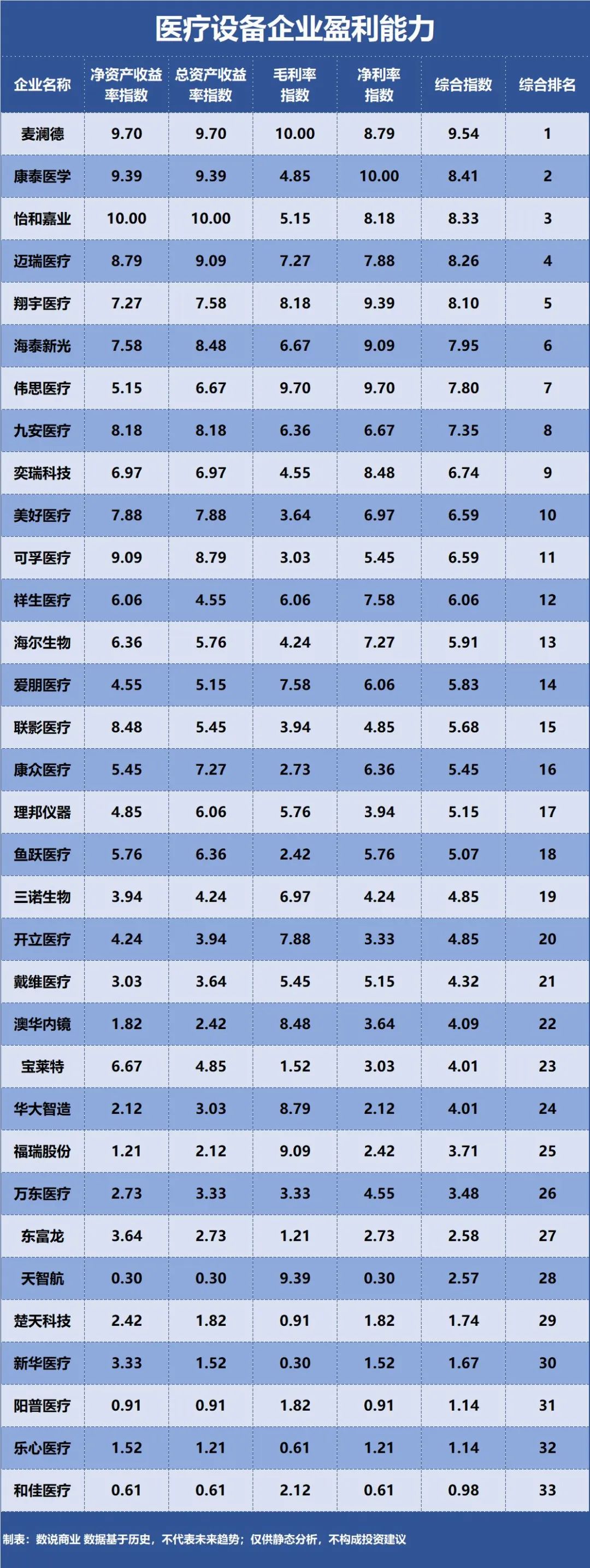醫(yī)療設(shè)備企業(yè)盈利能力