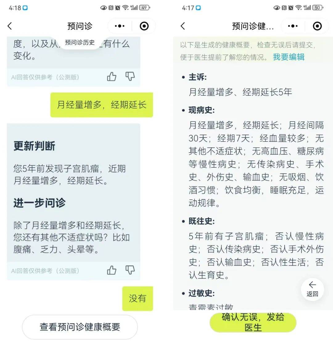 診前環(huán)節(jié),平臺的智能預(yù)問診功能,確保了患者在就診前即可通過手機端完成預(yù)問診。其不僅能像真實??漆t(yī)生般,智能追問患者病情,還能根據(jù)患者最新回答實時更新判斷。且在全面系統(tǒng)掌握患者病情信息后,可第一時間生成規(guī)范的結(jié)構(gòu)化預(yù)問診病歷并傳導(dǎo)至醫(yī)生端,促進醫(yī)、患實現(xiàn)更深度的問診交互,提升患者就診體驗同時,實現(xiàn)診療服務(wù)供給的高質(zhì)高效。