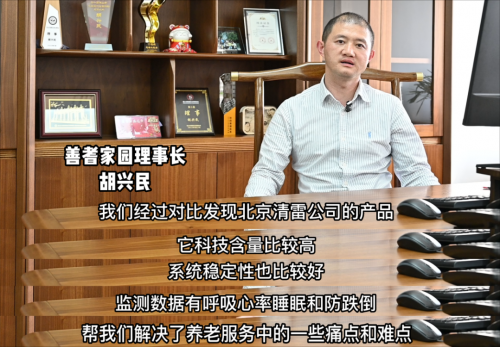 善耆家園理事長胡興民在采訪中說道:“清雷公司系統(tǒng)的科技性、穩(wěn)定性和產(chǎn)品對呼吸、心率、睡眠、跌倒的即時監(jiān)測解決了當(dāng)前養(yǎng)老服務(wù)中的一些痛點和難點?!?/p>